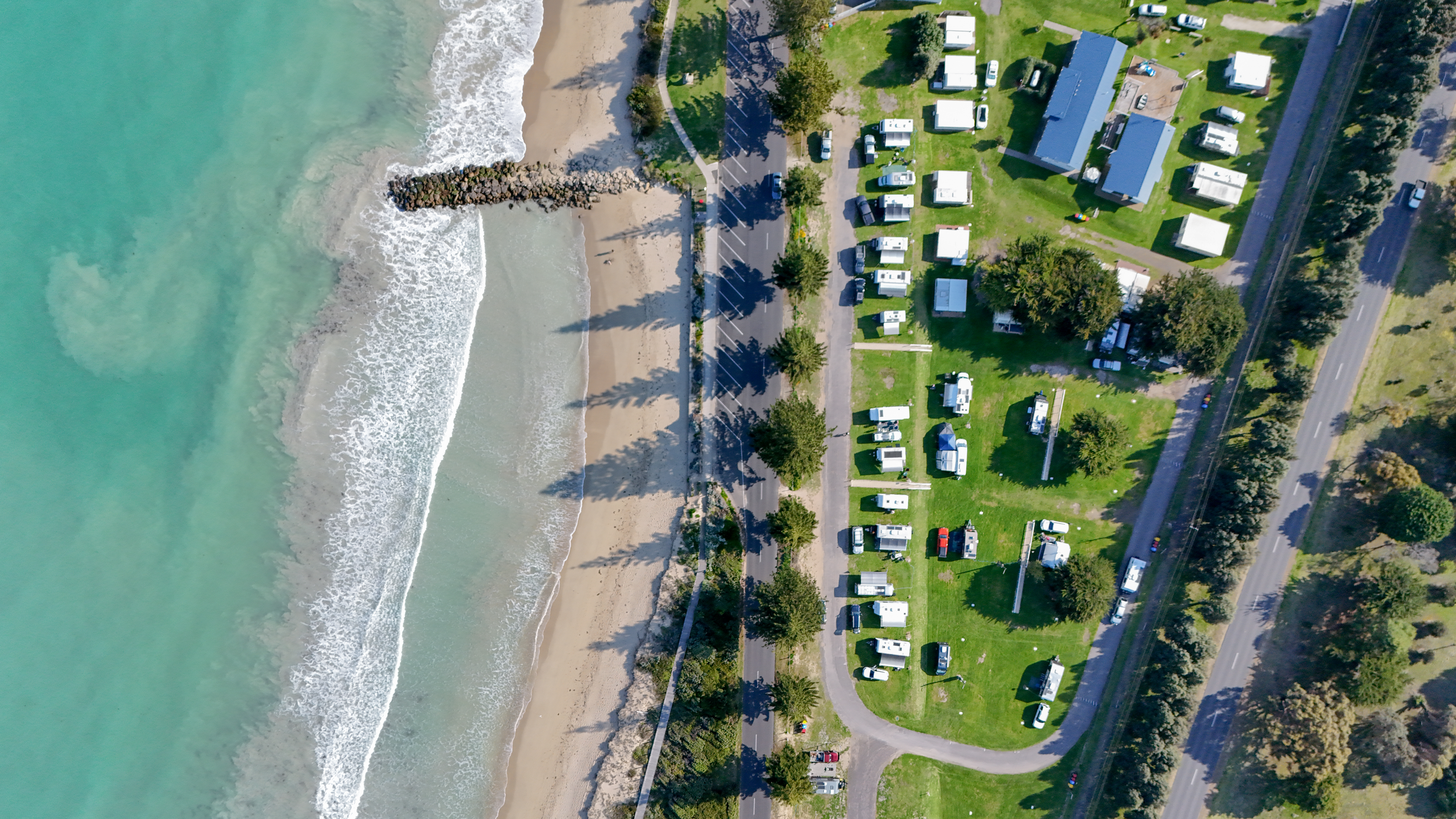 Your first port of call for a seaside holiday, Beachport Caravan Park has absolute beachfront campsites and accommodation. Park features include modern BBQ and camp kitchen facilities, a playground, activity room, and kiosk. Bring your furry friends along for the ride, with select dog-approved cabins and sites. Steps from the sand, right next door to the golf course, and close to town for easy access to cafés, shops, and restaurants … you couldn’t ask for a better location. A Surfside Luxury Apartment is the ticket to 180-degree beachfront views—or, if you’re travelling in a large group, book their spacious 12-berth Beach House for the ultimate summer vacay!