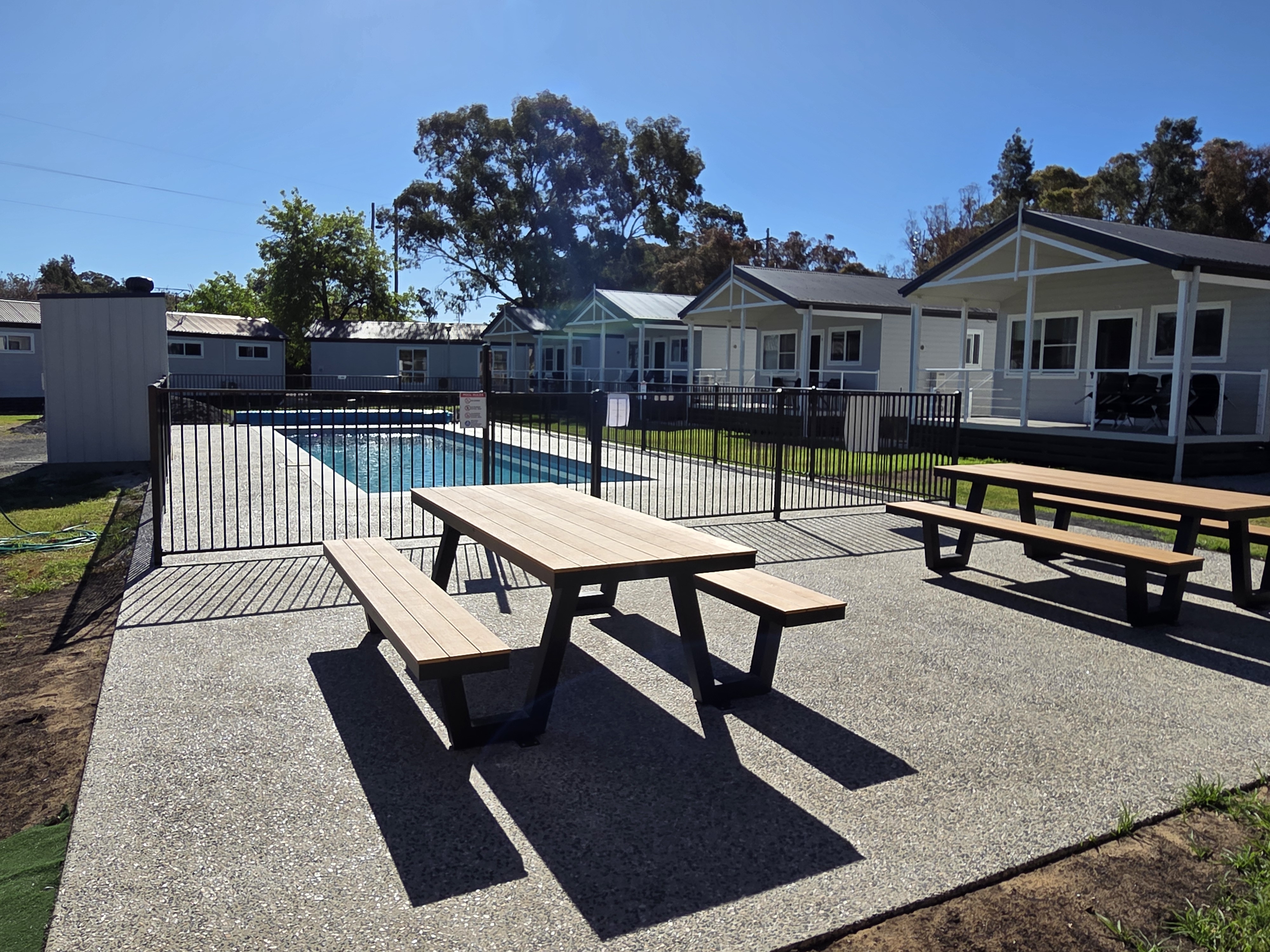 Gulgong Tourist Park has a lovely rural setting with large expanses of green lawns flanked by magnificent shady trees. There is a wide selection of accommodation to choose from, with cabins catering to couples through to families and bigger groups.
