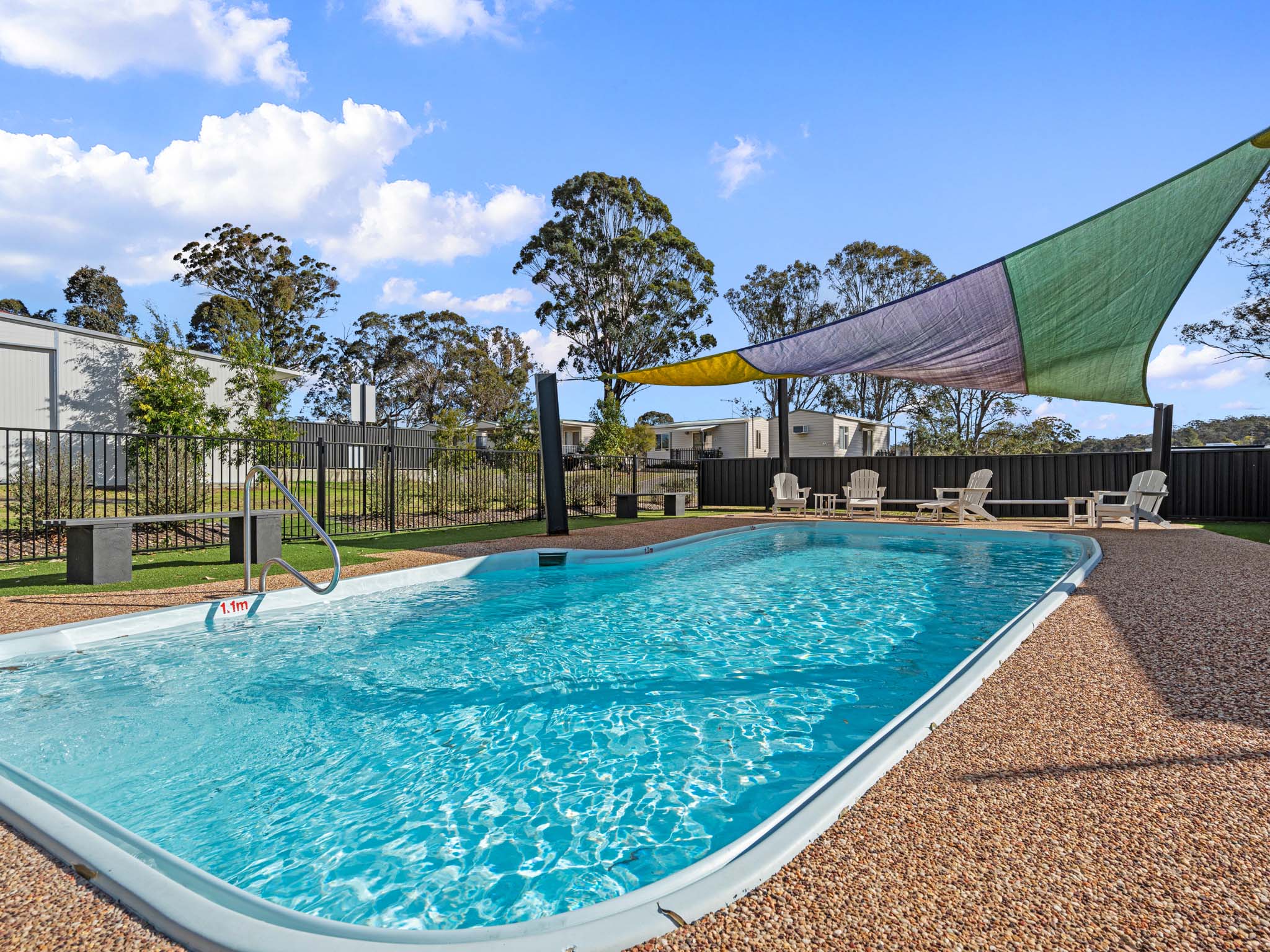 Set over nine acres of gardens with shady trees and a creek, the park offers a country oasis with room for the whole family to spread out and relax. Park features include a heated swimming pool, camp kitchens and picnic areas.