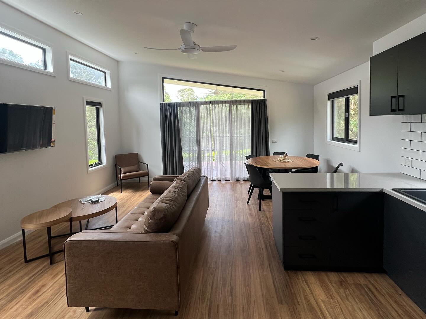 Large new 3 Bedroom Villa overlooking the Ovens River. 2 bathrooms (ensuite in main bedroom), Main bedroom - Queen Bed, Bedroom 2 - Double Bed and Bedroom 3 - 2 sets of single bunks. Full sized Kitchen with fridge, oven, hotplates, microwave, dishwasher and all cooking utensils, TV and split system air-conditioner. Large living/dining space with outdoor deck and furniture overlooking the Ovens River