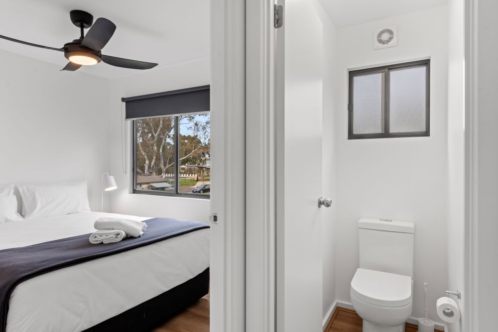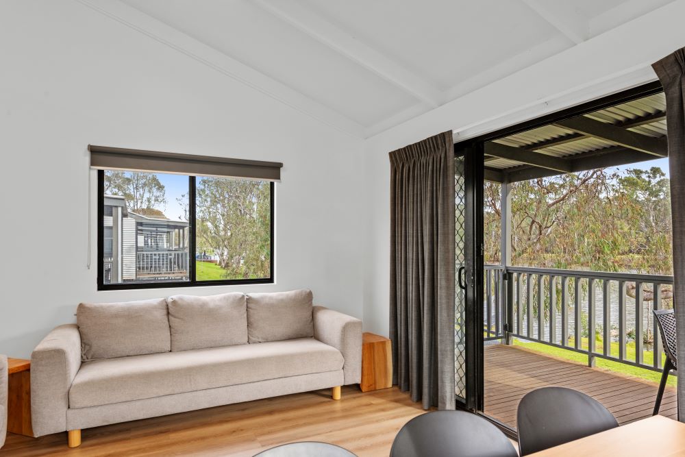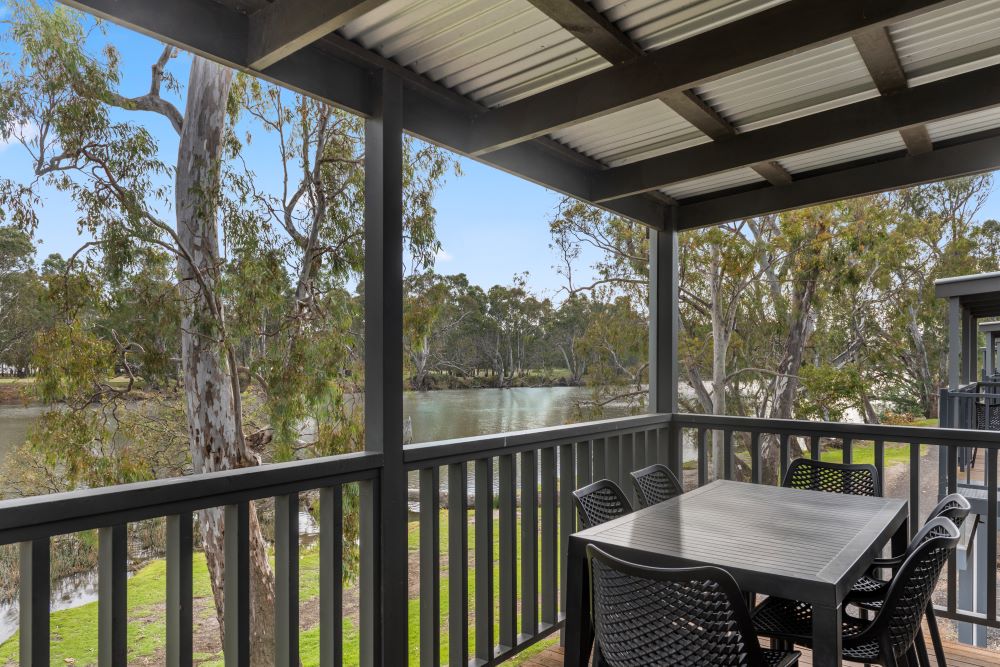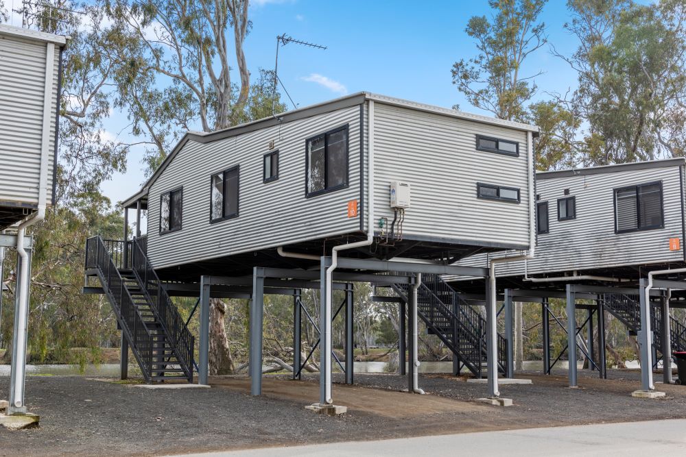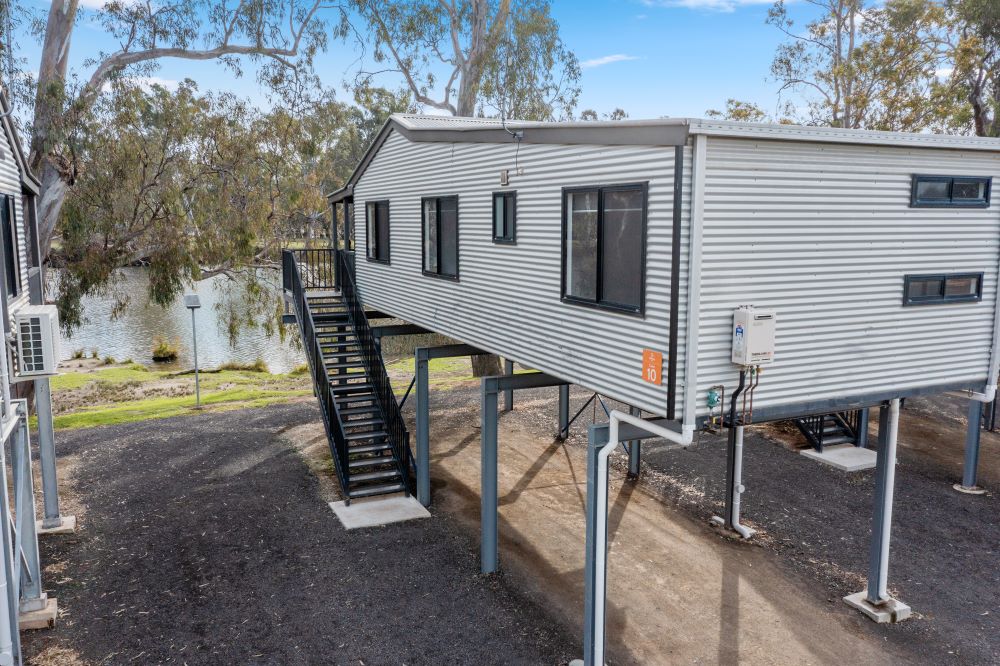 The Superior Riverside Cabin is raised 2.4m with 18 stairs to access the cabin, has three bedrooms with a lounge and dining area, bathroom and a full kitchen. With great views of the Goulburn River.