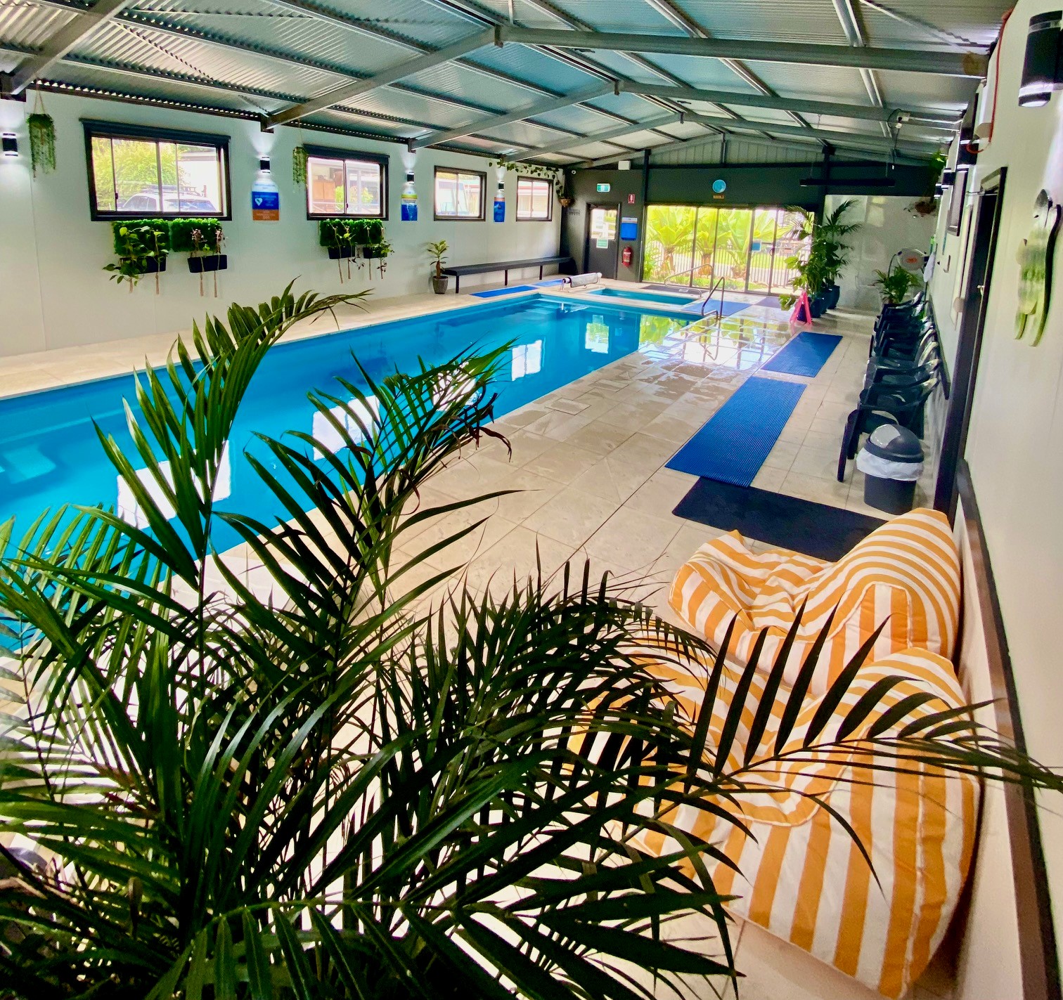 The park has been set up with the family in mind, with an indoor heated pool and spa as well as an on-site playground, BBQs and a camp kitchen. We also hire a pedal carts for use inside the park or Electric Bikes for use on the nearby Rail Trail!